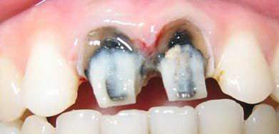 1、真牙齲壞。因?yàn)椴幻芎?烤瓷牙和真牙之間藏納的細(xì)菌會(huì)逐漸腐蝕真牙,造成真牙齲壞,時(shí)間久了真牙甚至?xí)耆珷€光,烤瓷牙成為無本之木。