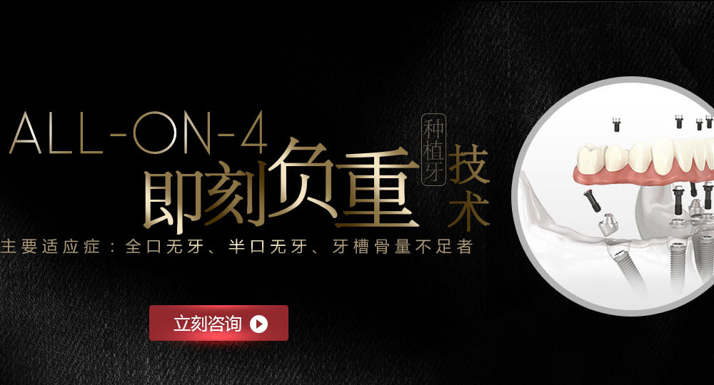 All―on―4種植技術是歐美先進的口腔種植技術,主要針對于全口無牙或者半口無牙的情況下,利用4顆種植體,于兩顆前牙部位的種植體垂直植入牙槽骨內,而兩顆中遠部位的種植體采取傾斜角度植入牙槽骨內,然后在種植體的基臺上安裝“拱形連橋”牙冠,這樣整個種植牙的受力就呈現出“拱形”的特征,完成口腔種植修復。